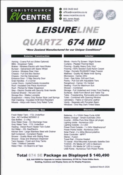 - Christchurch RV Centre is the only factory accredited Leisure Line Dealer in the South Island and the largest dealer in New Zealand.